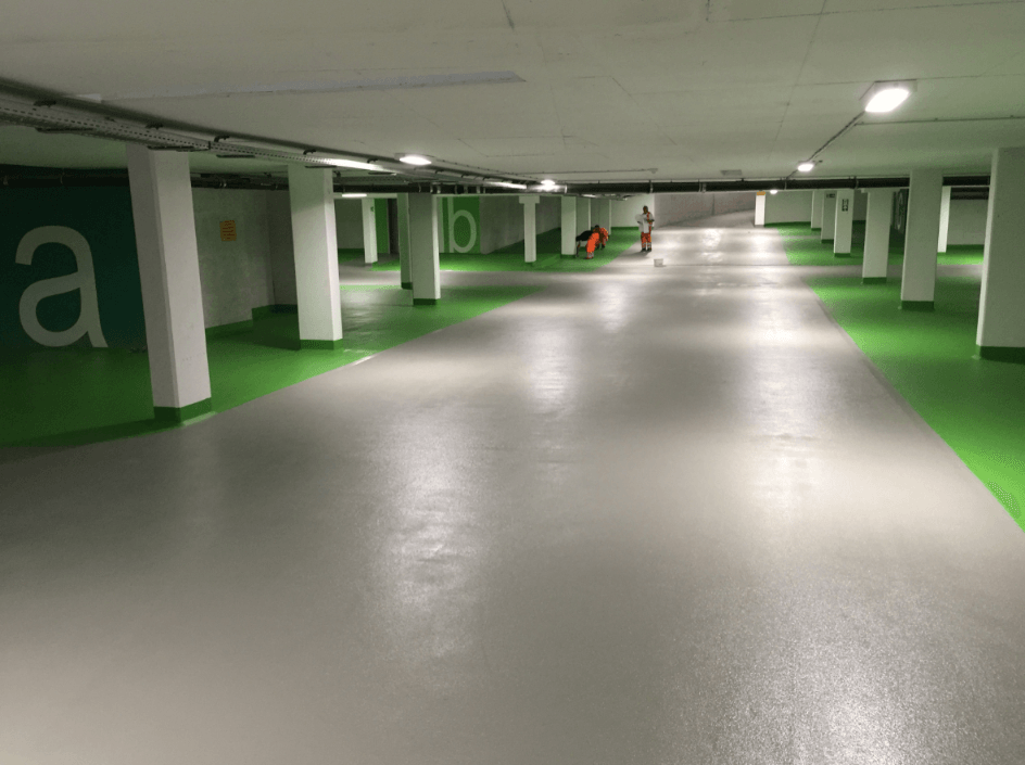 Tiefgaragen und Parkhäuser bedürfen einen wirksamen Oberflächenschutz gegen Chlorideindringungen zum Schutze der Betonkonstruktion. Darüber hinaus sind sie widerstandsfähig gegen Gummiabriebe sowie dem Eindringen von Ölen und Benzole. Ebenso wird die benötigte Rutschhemmstufe durch das Aufbringen erreicht.